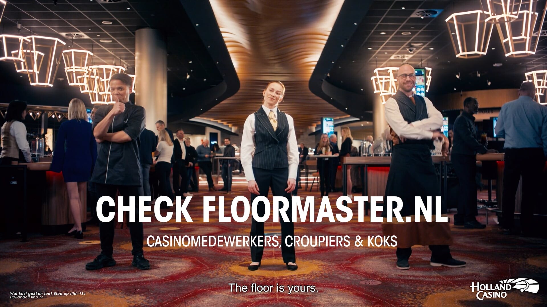 Holland Casino is opgericht vanuit de rol om gokken serieus te nemen. Entertainment en plezier staan voorop, maar dat wel in een veilig en verantwoorde omgeving. Daar staat Holland Casino voor en dat vraagt wat van je als medewerker. Je hebt een verantwoordelijke rol. Het is ervoor zorgen dat je gasten een leuke avond hebben en erop letten dat niemand uit de bocht vliegt. Dat is uniek werk wat je nergens anders vindt. Als je erover nadenkt is het niet zomaar een een baan, het is een vak. Dat vak vraagt om een eigen naam en daarom introduceren we Floormaster. The floor is yours. Met dit thema voeren we campagne en laten we doelgroepen kennis maken met alle ins en outs via de nieuwe wervingssite